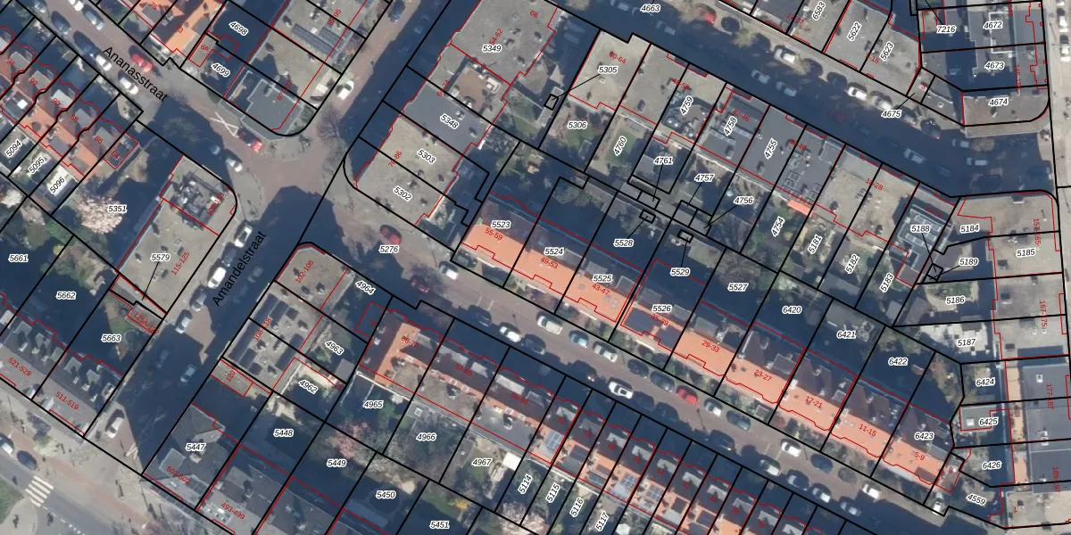 Ananasstraat 53 is gelegen op kadastraal perceel LDN03I5524. Deze kadastrale aanduiding is uniek en wordt gebruikt door het Kadaster om eigendomsrechten en andere zakelijke rechten vast te leggen. Het perceel maakt onderdeel uit van de kadastrale gemeente Loosduinen.