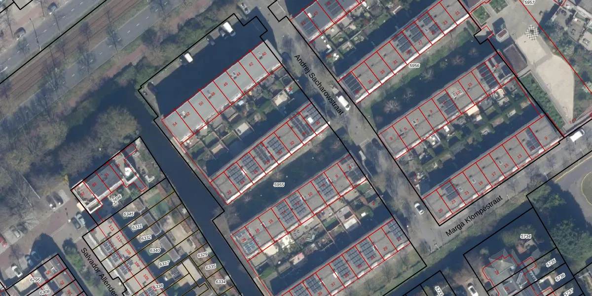 Het perceel waarop Andrej Sacharowstraat 32 staat heeft een oppervlakte van 5105 m². Dit is een zeer groot perceel. De perceeloppervlakte wordt geregistreerd door het Kadaster. Gedetailleerde informatie over de maten van dit perceel kunt u vinden in het rapport Kadastrale kaart met maatvoering van Andrej Sacharowstraat 32.