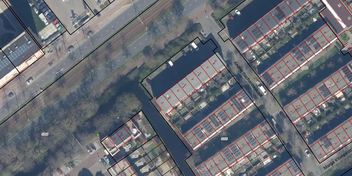 Het perceel waarop Andrej Sacharowstraat 50 staat heeft een oppervlakte van 5105 m². Dit is een zeer groot perceel. De perceeloppervlakte wordt geregistreerd door het Kadaster. Gedetailleerde informatie over de maten van dit perceel kunt u vinden in het rapport Kadastrale kaart met maatvoering van Andrej Sacharowstraat 50.