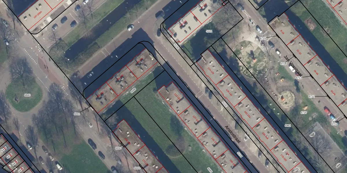 Het perceel waarop Anslostraat 117 staat heeft een oppervlakte van 3110 m². Dit is een zeer groot perceel. De perceeloppervlakte wordt geregistreerd door het Kadaster. Gedetailleerde informatie over de maten van dit perceel kunt u vinden in het rapport Kadastrale kaart met maatvoering van Anslostraat 117.