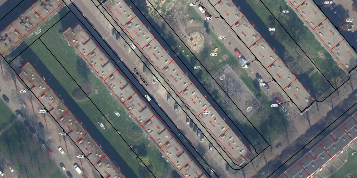 Het perceel waarop Anslostraat 168 staat heeft een oppervlakte van 1725 m². Dit is een zeer groot perceel. De perceeloppervlakte wordt geregistreerd door het Kadaster. Gedetailleerde informatie over de maten van dit perceel kunt u vinden in het rapport Kadastrale kaart met maatvoering van Anslostraat 168.