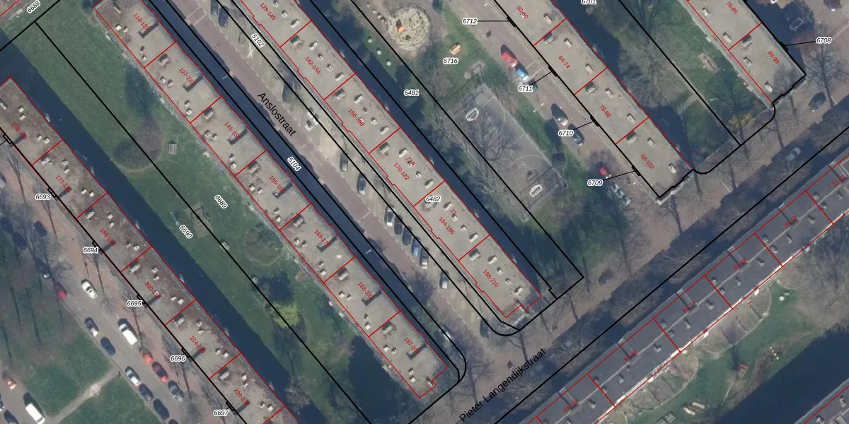 Het perceel waarop Anslostraat 186 staat heeft een oppervlakte van 1725 m². Dit is een zeer groot perceel. De perceeloppervlakte wordt geregistreerd door het Kadaster. Gedetailleerde informatie over de maten van dit perceel kunt u vinden in het rapport Kadastrale kaart met maatvoering van Anslostraat 186.