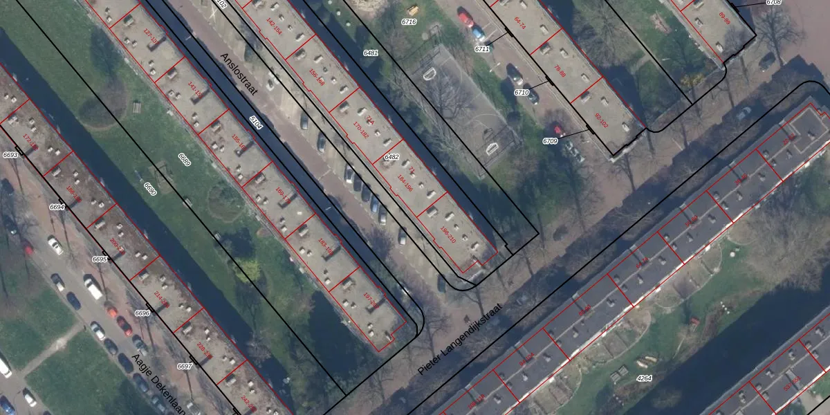 Het perceel waarop Anslostraat 192 staat heeft een oppervlakte van 1725 m². Dit is een zeer groot perceel. De perceeloppervlakte wordt geregistreerd door het Kadaster. Gedetailleerde informatie over de maten van dit perceel kunt u vinden in het rapport Kadastrale kaart met maatvoering van Anslostraat 192.