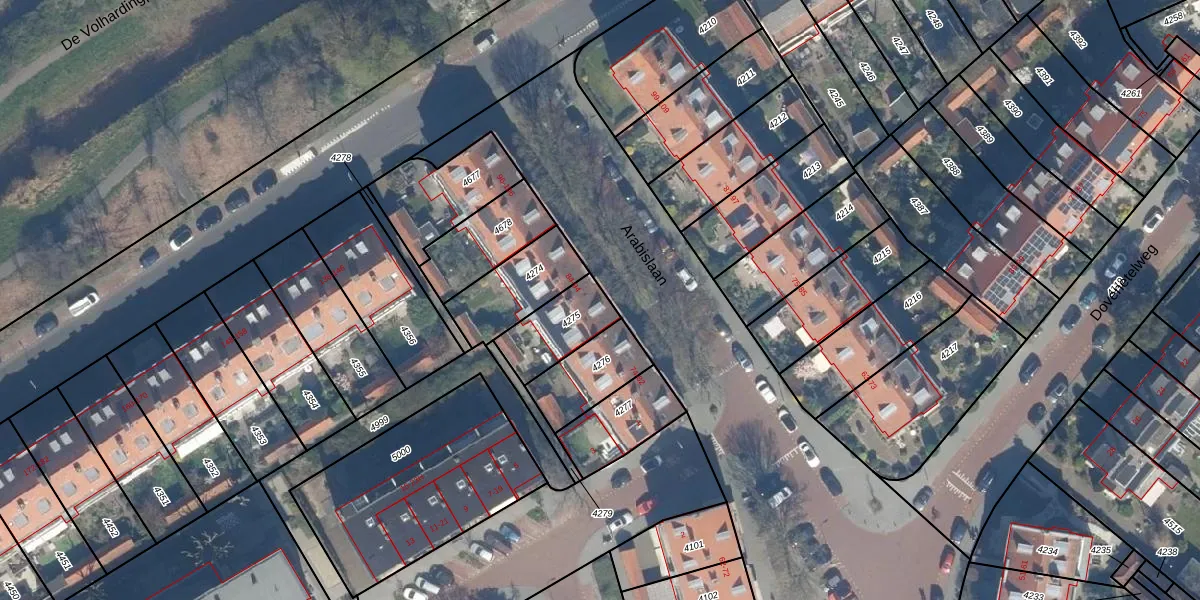 Het perceel waarop Arabislaan 88 staat heeft een oppervlakte van 185 m². Dit is een middelgroot perceel. De perceeloppervlakte wordt geregistreerd door het Kadaster. Gedetailleerde informatie over de maten van dit perceel kunt u vinden in het rapport Kadastrale kaart met maatvoering van Arabislaan 88.