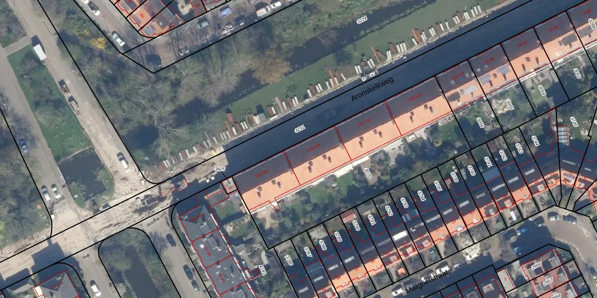 Het perceel waarop Aronskelkweg 142 staat heeft een oppervlakte van 2088 m². Dit is een zeer groot perceel. De perceeloppervlakte wordt geregistreerd door het Kadaster. Gedetailleerde informatie over de maten van dit perceel kunt u vinden in het rapport Kadastrale kaart met maatvoering van Aronskelkweg 142.