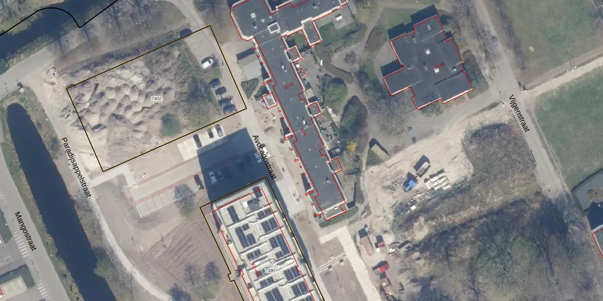 Het perceel waarop Avocadostraat 16 staat heeft een oppervlakte van 14,0 ha. Dit is een zeer groot perceel. De perceeloppervlakte wordt geregistreerd door het Kadaster. Gedetailleerde informatie over de maten van dit perceel kunt u vinden in het rapport Kadastrale kaart met maatvoering van Avocadostraat 16.