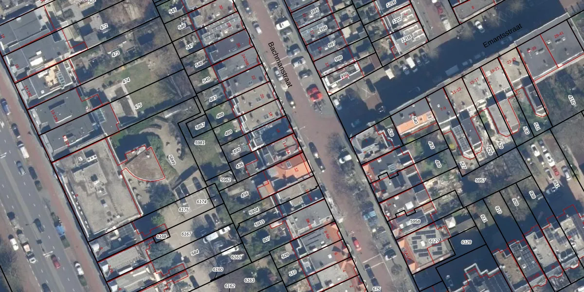 Het perceel waarop Bachmanstraat 14 staat heeft een oppervlakte van 181 m². Dit is een middelgroot perceel. De perceeloppervlakte wordt geregistreerd door het Kadaster. Gedetailleerde informatie over de maten van dit perceel kunt u vinden in het rapport Kadastrale kaart met maatvoering van Bachmanstraat 14.