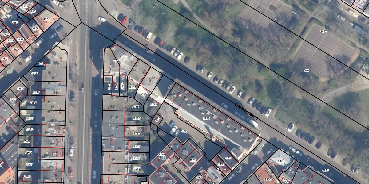 Badhuiskade 18 is gelegen op kadastraal perceel GVH23AF3752. Deze kadastrale aanduiding is uniek en wordt gebruikt door het Kadaster om eigendomsrechten en andere zakelijke rechten vast te leggen. Het perceel maakt onderdeel uit van de kadastrale gemeente 's-Gravenhage.