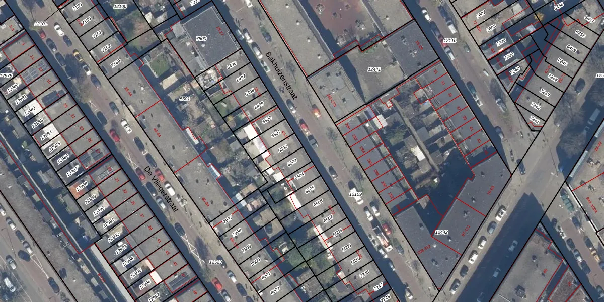 Het perceel waarop Bakhuizenstraat 55 staat heeft een oppervlakte van 96 m². Dit is een klein perceel. De perceeloppervlakte wordt geregistreerd door het Kadaster. Gedetailleerde informatie over de maten van dit perceel kunt u vinden in het rapport Kadastrale kaart met maatvoering van Bakhuizenstraat 55.