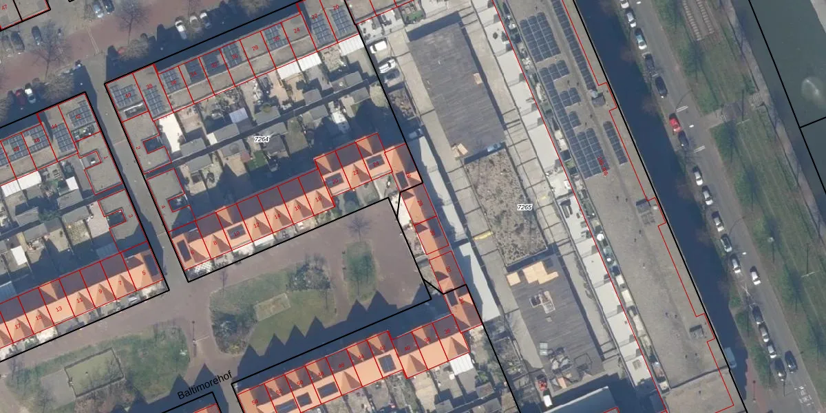 Het perceel waarop Baltimorehof 28 staat heeft een oppervlakte van 6995 m². Dit is een zeer groot perceel. De perceeloppervlakte wordt geregistreerd door het Kadaster. Gedetailleerde informatie over de maten van dit perceel kunt u vinden in het rapport Kadastrale kaart met maatvoering van Baltimorehof 28.