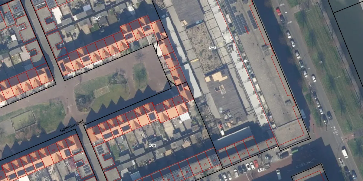 Baltimorehof 34 is gelegen op kadastraal perceel GVH38AX7266. Deze kadastrale aanduiding is uniek en wordt gebruikt door het Kadaster om eigendomsrechten en andere zakelijke rechten vast te leggen. Het perceel maakt onderdeel uit van de kadastrale gemeente 's-Gravenhage.
