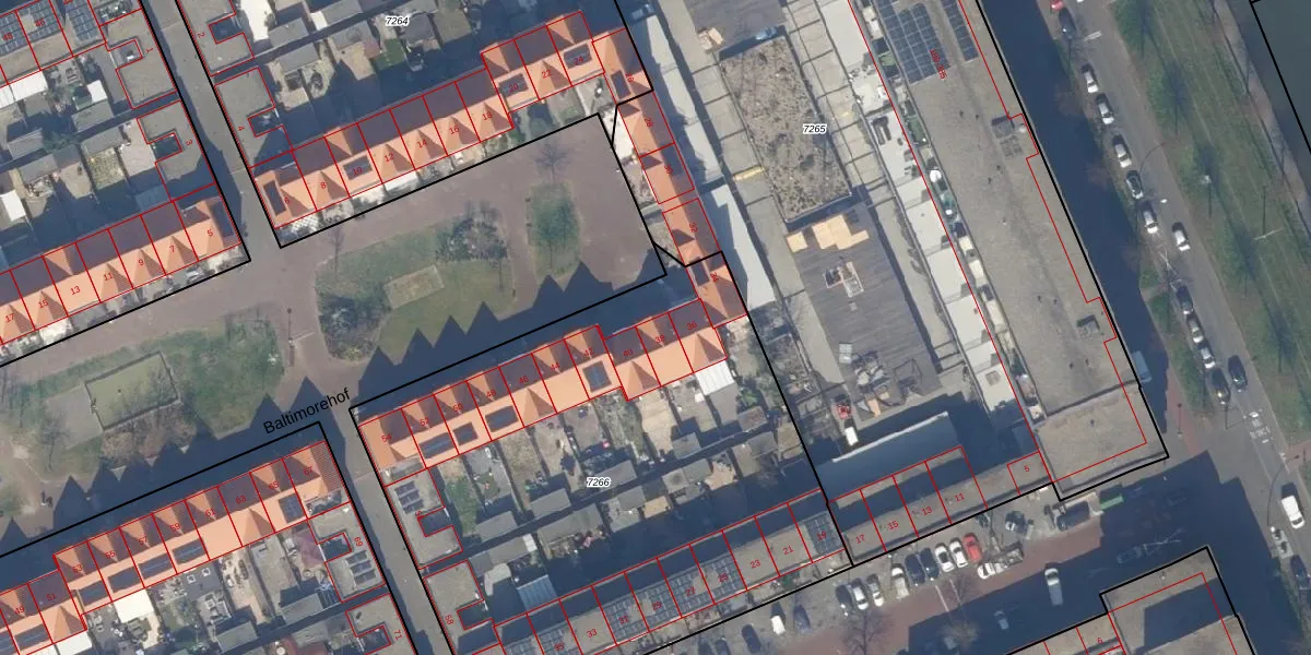 Baltimorehof 38 is gelegen op kadastraal perceel GVH38AX7266. Deze kadastrale aanduiding is uniek en wordt gebruikt door het Kadaster om eigendomsrechten en andere zakelijke rechten vast te leggen. Het perceel maakt onderdeel uit van de kadastrale gemeente 's-Gravenhage.