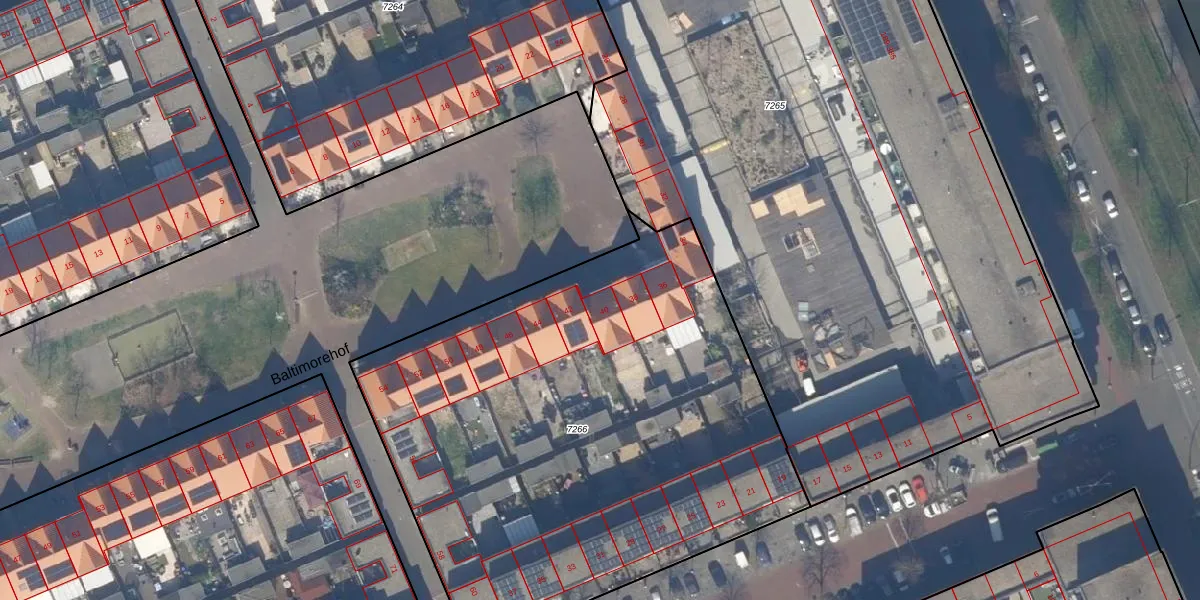 Baltimorehof 40 is gelegen op kadastraal perceel GVH38AX7266. Deze kadastrale aanduiding is uniek en wordt gebruikt door het Kadaster om eigendomsrechten en andere zakelijke rechten vast te leggen. Het perceel maakt onderdeel uit van de kadastrale gemeente 's-Gravenhage.