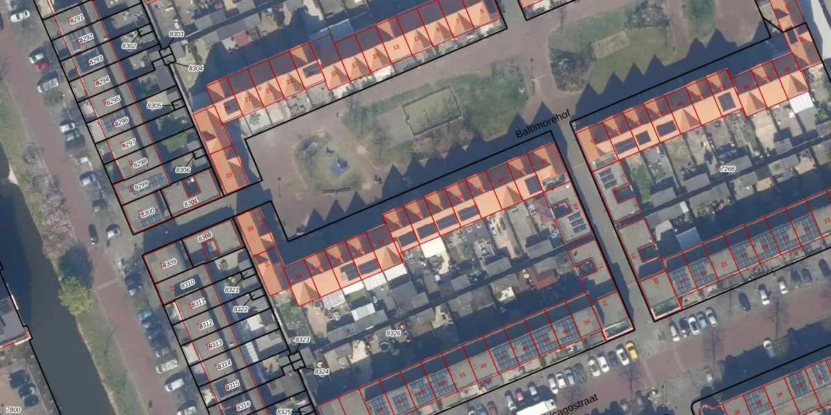 Baltimorehof 55 is gelegen op kadastraal perceel GVH38AX8326. Deze kadastrale aanduiding is uniek en wordt gebruikt door het Kadaster om eigendomsrechten en andere zakelijke rechten vast te leggen. Het perceel maakt onderdeel uit van de kadastrale gemeente 's-Gravenhage.