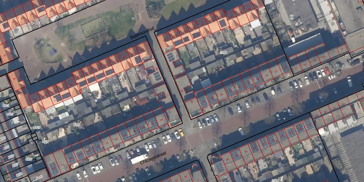 Het perceel waarop Baltimorehof 58 staat heeft een oppervlakte van 3225 m². Dit is een zeer groot perceel. De perceeloppervlakte wordt geregistreerd door het Kadaster. Gedetailleerde informatie over de maten van dit perceel kunt u vinden in het rapport Kadastrale kaart met maatvoering van Baltimorehof 58.