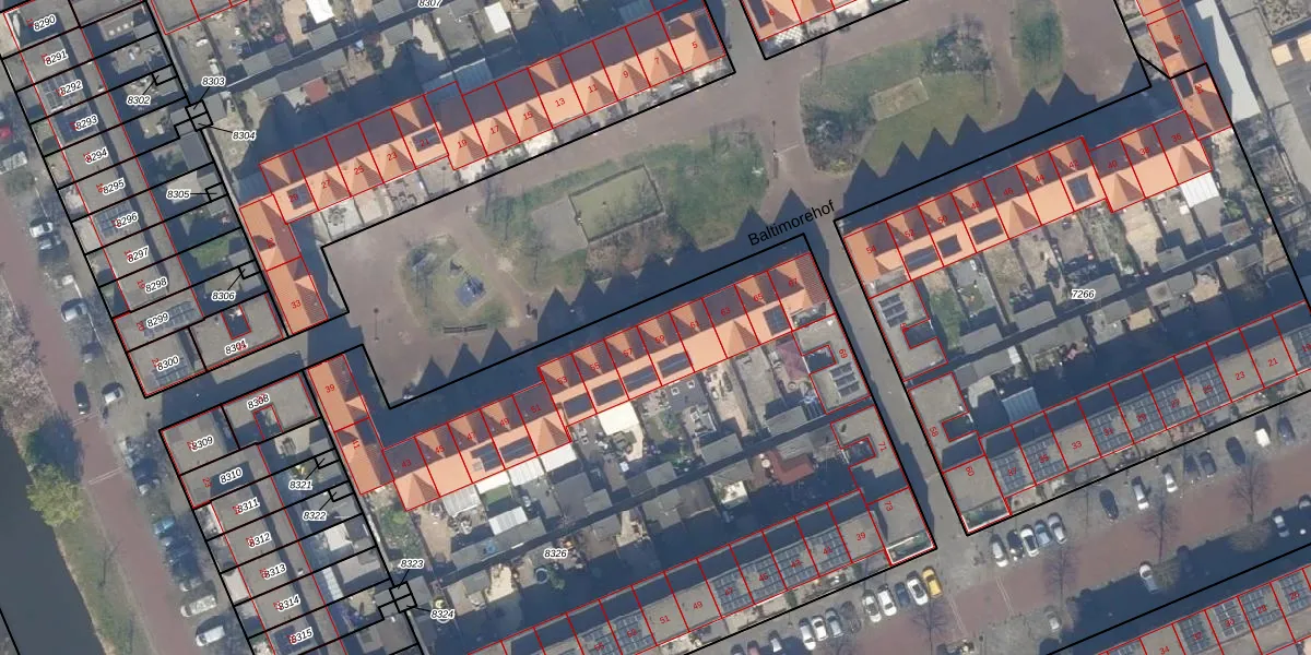 Baltimorehof 59 is gelegen op kadastraal perceel GVH38AX8326. Deze kadastrale aanduiding is uniek en wordt gebruikt door het Kadaster om eigendomsrechten en andere zakelijke rechten vast te leggen. Het perceel maakt onderdeel uit van de kadastrale gemeente 's-Gravenhage.