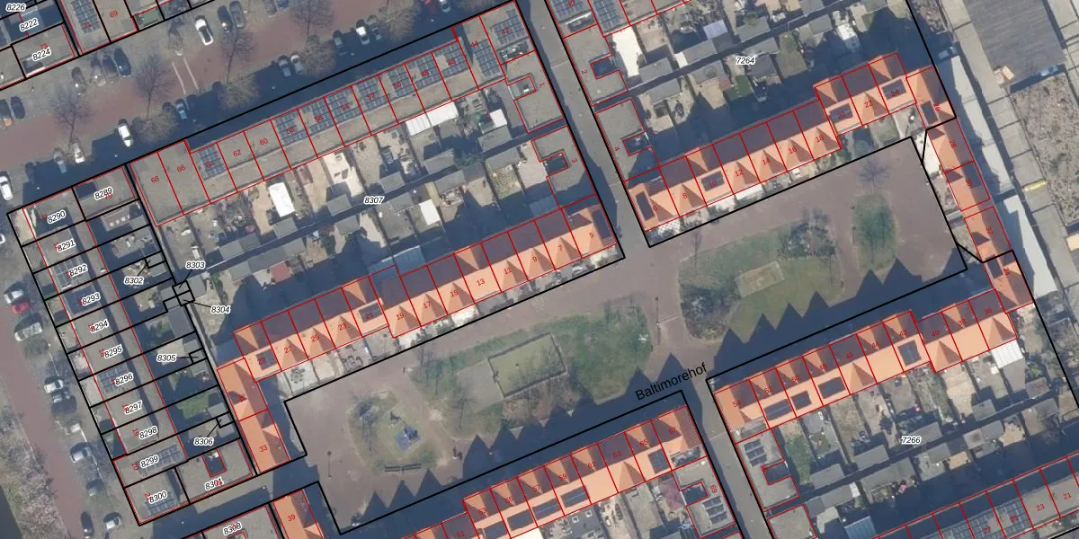 Baltimorehof 9 is gelegen op kadastraal perceel GVH38AX8307. Deze kadastrale aanduiding is uniek en wordt gebruikt door het Kadaster om eigendomsrechten en andere zakelijke rechten vast te leggen. Het perceel maakt onderdeel uit van de kadastrale gemeente 's-Gravenhage.