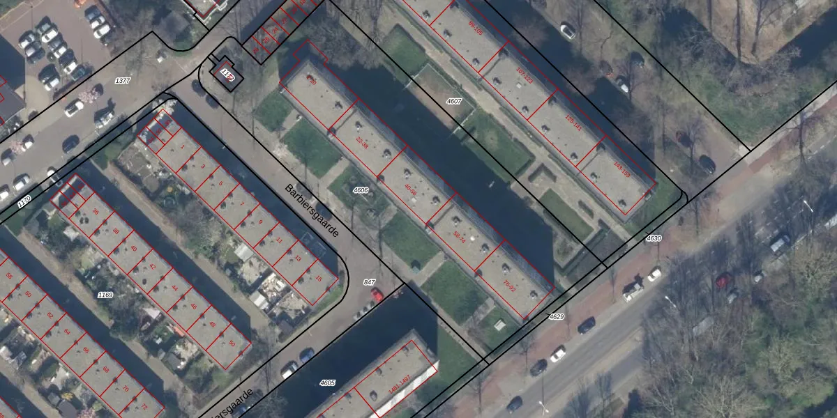 Het perceel waarop Barbiersgaarde 50 staat heeft een oppervlakte van 3335 m². Dit is een zeer groot perceel. De perceeloppervlakte wordt geregistreerd door het Kadaster. Gedetailleerde informatie over de maten van dit perceel kunt u vinden in het rapport Kadastrale kaart met maatvoering van Barbiersgaarde 50.