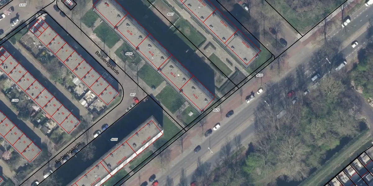 Het perceel waarop Barbiersgaarde 78 staat heeft een oppervlakte van 3335 m². Dit is een zeer groot perceel. De perceeloppervlakte wordt geregistreerd door het Kadaster. Gedetailleerde informatie over de maten van dit perceel kunt u vinden in het rapport Kadastrale kaart met maatvoering van Barbiersgaarde 78.