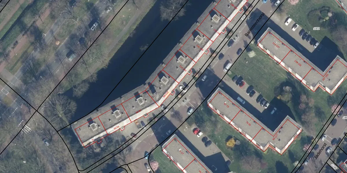Het perceel waarop Barnsteenhorst 104 staat heeft een oppervlakte van 8087 m². Dit is een zeer groot perceel. De perceeloppervlakte wordt geregistreerd door het Kadaster. Gedetailleerde informatie over de maten van dit perceel kunt u vinden in het rapport Kadastrale kaart met maatvoering van Barnsteenhorst 104.