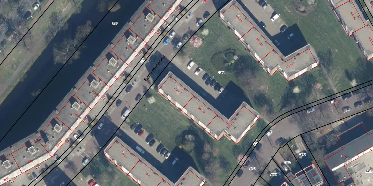 Het perceel waarop Barnsteenhorst 133 staat heeft een oppervlakte van 1,4 ha. Dit is een zeer groot perceel. De perceeloppervlakte wordt geregistreerd door het Kadaster. Gedetailleerde informatie over de maten van dit perceel kunt u vinden in het rapport Kadastrale kaart met maatvoering van Barnsteenhorst 133.