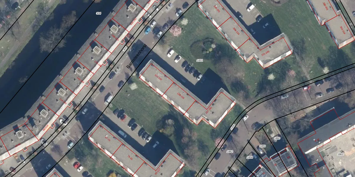 Het perceel waarop Barnsteenhorst 143 staat heeft een oppervlakte van 1,4 ha. Dit is een zeer groot perceel. De perceeloppervlakte wordt geregistreerd door het Kadaster. Gedetailleerde informatie over de maten van dit perceel kunt u vinden in het rapport Kadastrale kaart met maatvoering van Barnsteenhorst 143.