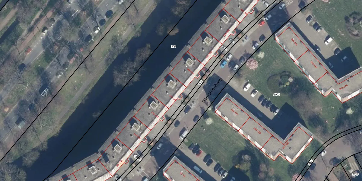 Het perceel waarop Barnsteenhorst 192 staat heeft een oppervlakte van 8087 m². Dit is een zeer groot perceel. De perceeloppervlakte wordt geregistreerd door het Kadaster. Gedetailleerde informatie over de maten van dit perceel kunt u vinden in het rapport Kadastrale kaart met maatvoering van Barnsteenhorst 192.