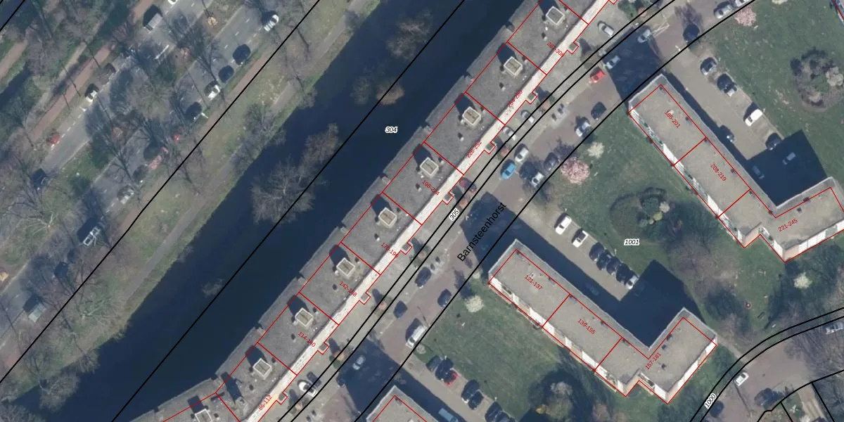 Het perceel waarop Barnsteenhorst 198 staat heeft een oppervlakte van 8087 m². Dit is een zeer groot perceel. De perceeloppervlakte wordt geregistreerd door het Kadaster. Gedetailleerde informatie over de maten van dit perceel kunt u vinden in het rapport Kadastrale kaart met maatvoering van Barnsteenhorst 198.