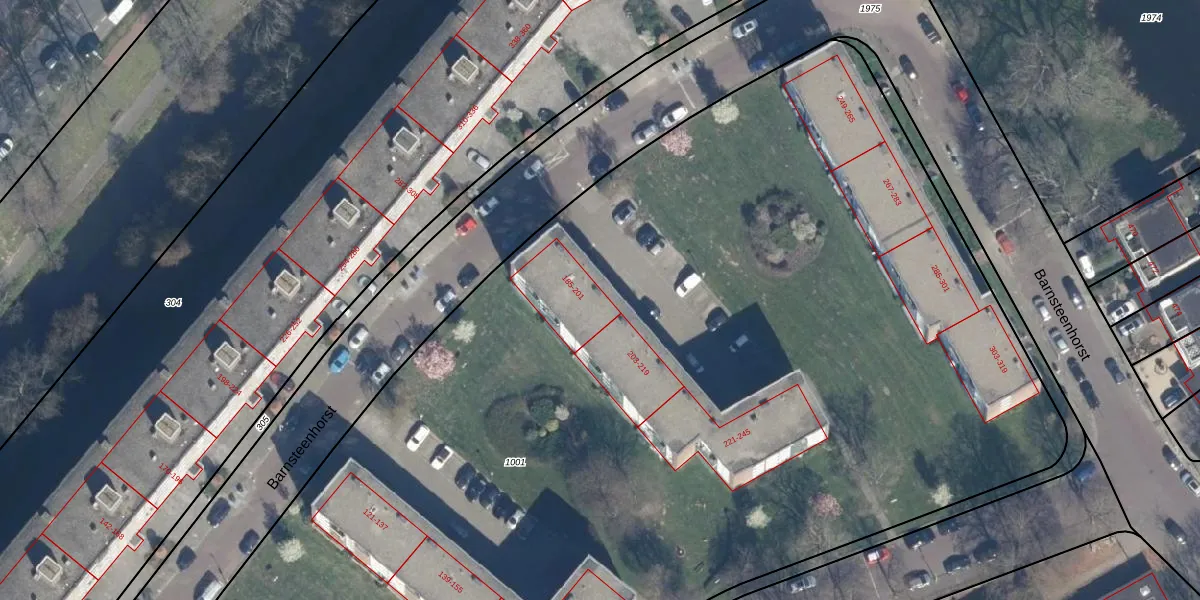 Het perceel waarop Barnsteenhorst 201 staat heeft een oppervlakte van 1,4 ha. Dit is een zeer groot perceel. De perceeloppervlakte wordt geregistreerd door het Kadaster. Gedetailleerde informatie over de maten van dit perceel kunt u vinden in het rapport Kadastrale kaart met maatvoering van Barnsteenhorst 201.