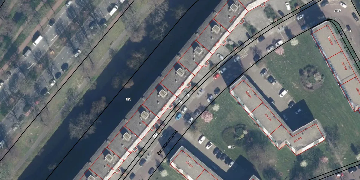 Het perceel waarop Barnsteenhorst 262 staat heeft een oppervlakte van 8087 m². Dit is een zeer groot perceel. De perceeloppervlakte wordt geregistreerd door het Kadaster. Gedetailleerde informatie over de maten van dit perceel kunt u vinden in het rapport Kadastrale kaart met maatvoering van Barnsteenhorst 262.