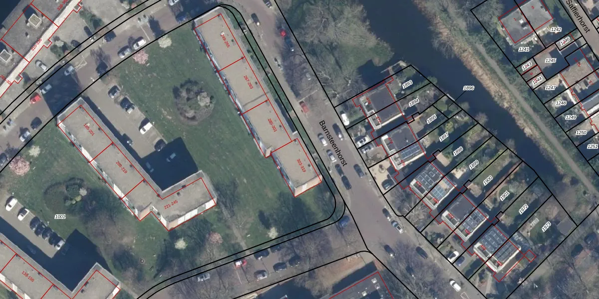 Het perceel waarop Barnsteenhorst 305 staat heeft een oppervlakte van 1,4 ha. Dit is een zeer groot perceel. De perceeloppervlakte wordt geregistreerd door het Kadaster. Gedetailleerde informatie over de maten van dit perceel kunt u vinden in het rapport Kadastrale kaart met maatvoering van Barnsteenhorst 305.