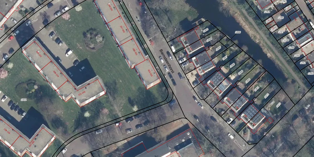 Het perceel waarop Barnsteenhorst 319 staat heeft een oppervlakte van 1,4 ha. Dit is een zeer groot perceel. De perceeloppervlakte wordt geregistreerd door het Kadaster. Gedetailleerde informatie over de maten van dit perceel kunt u vinden in het rapport Kadastrale kaart met maatvoering van Barnsteenhorst 319.