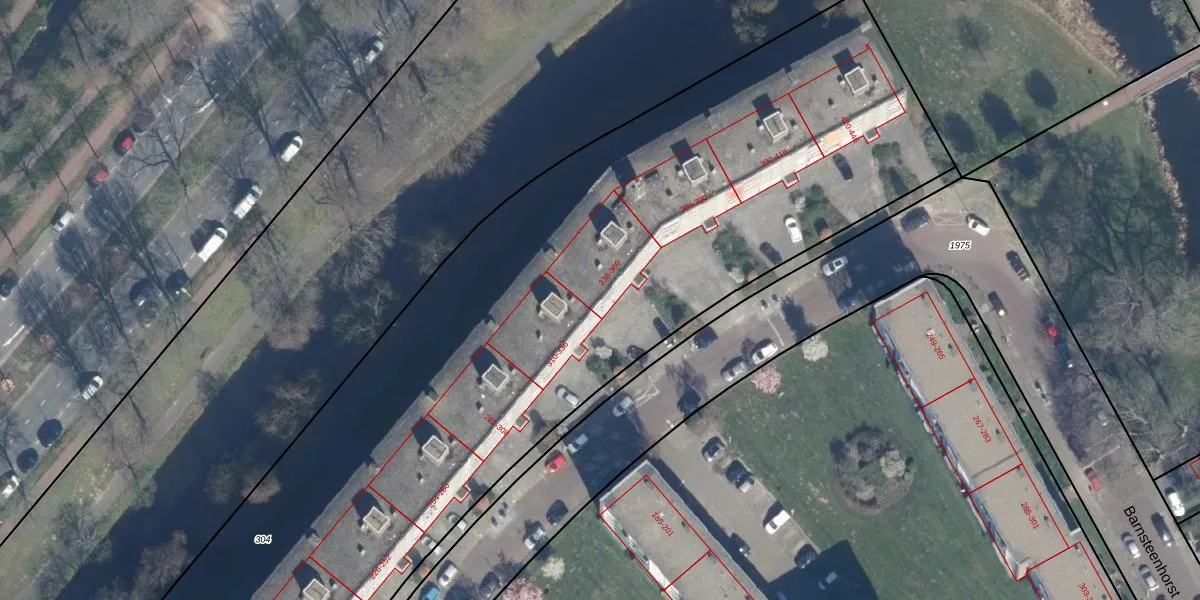 Het perceel waarop Barnsteenhorst 338 staat heeft een oppervlakte van 8087 m². Dit is een zeer groot perceel. De perceeloppervlakte wordt geregistreerd door het Kadaster. Gedetailleerde informatie over de maten van dit perceel kunt u vinden in het rapport Kadastrale kaart met maatvoering van Barnsteenhorst 338.