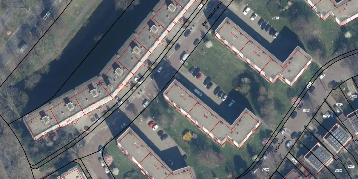 Het perceel waarop Barnsteenhorst 57 staat heeft een oppervlakte van 1,4 ha. Dit is een zeer groot perceel. De perceeloppervlakte wordt geregistreerd door het Kadaster. Gedetailleerde informatie over de maten van dit perceel kunt u vinden in het rapport Kadastrale kaart met maatvoering van Barnsteenhorst 57.