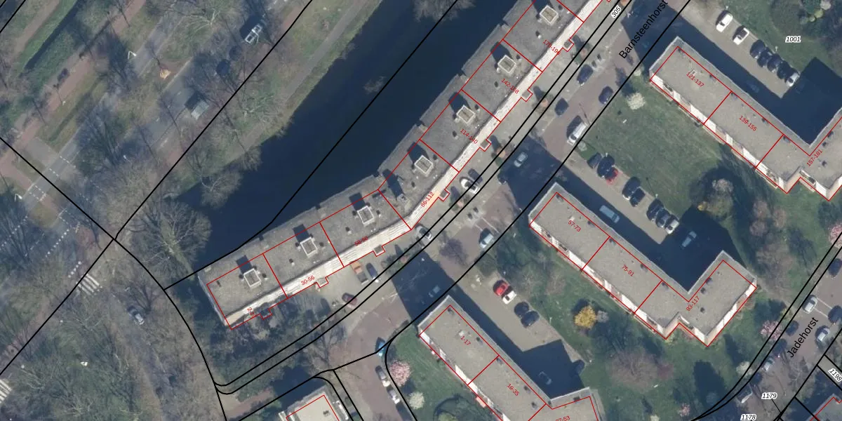 Het perceel waarop Barnsteenhorst 96 staat heeft een oppervlakte van 8087 m². Dit is een zeer groot perceel. De perceeloppervlakte wordt geregistreerd door het Kadaster. Gedetailleerde informatie over de maten van dit perceel kunt u vinden in het rapport Kadastrale kaart met maatvoering van Barnsteenhorst 96.