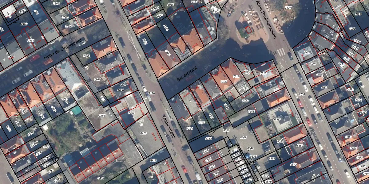 Bazarstraat 50 is gelegen op kadastraal perceel GVH10O7165. Deze kadastrale aanduiding is uniek en wordt gebruikt door het Kadaster om eigendomsrechten en andere zakelijke rechten vast te leggen. Het perceel maakt onderdeel uit van de kadastrale gemeente 's-Gravenhage.