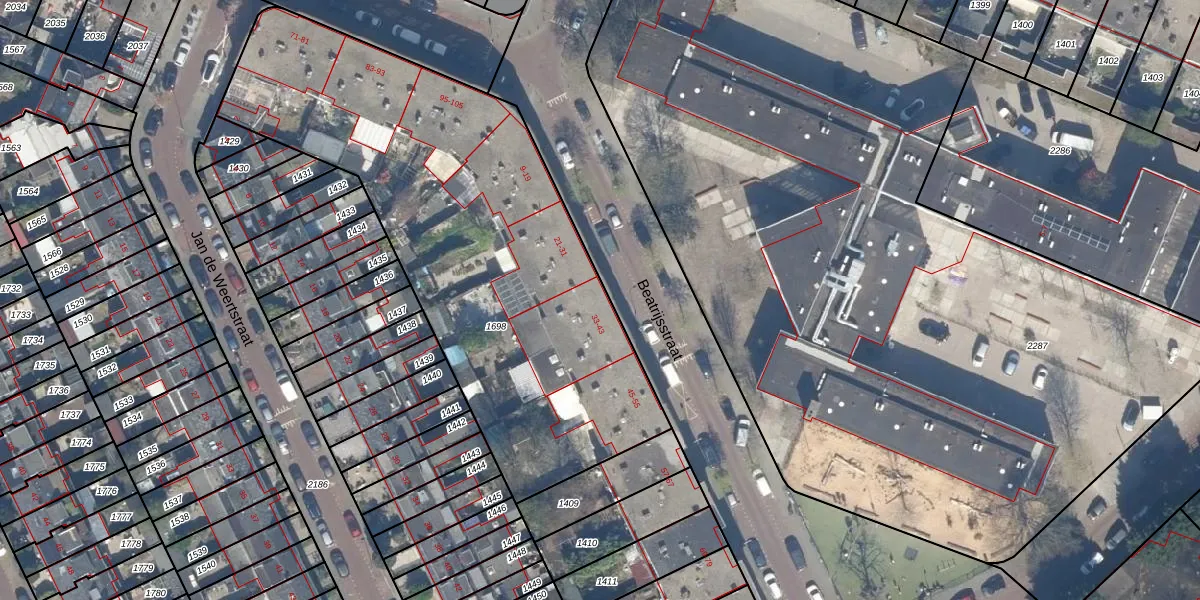 Het perceel waarop Beatrijsstraat 35 staat heeft een oppervlakte van 2495 m². Dit is een zeer groot perceel. De perceeloppervlakte wordt geregistreerd door het Kadaster. Gedetailleerde informatie over de maten van dit perceel kunt u vinden in het rapport Kadastrale kaart met maatvoering van Beatrijsstraat 35.