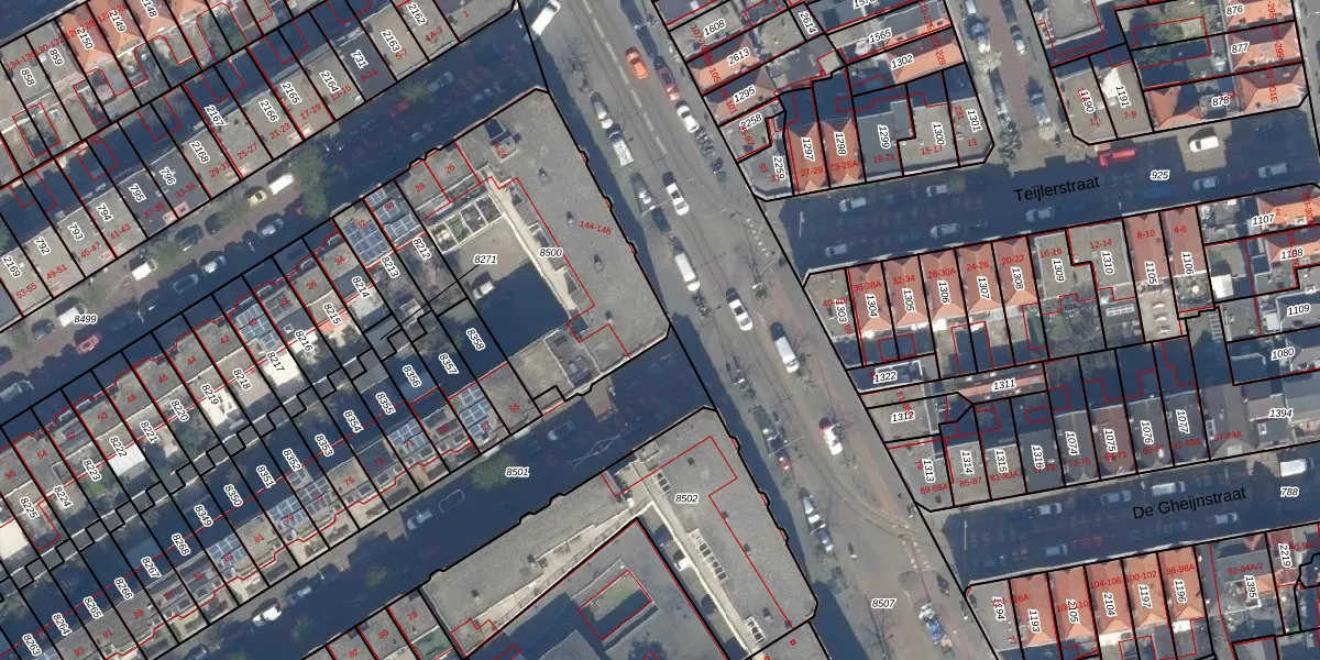 Het perceel waarop het adres ligt is GVH29-AM-8500. De afkorting 'GVH29' staat voor kadastrale gemeente 's-Gravenhage. De gemiddelde perceeloppervlakte in de kadastrale gemeente 's-Gravenhage is 303,34 m². Dit perceel is met zijn 1069 m² dus groter dan gemiddeld. De grootste perceeloppervlakte in de kadastrale gemeente is 3,0 ha. De kleinste oppervlakte bedraagt 0 m². Er zijn 22 adressen aanwezig op het perceel. In de Basisregistratie Kadaster (BRK) werden de grenzen van het perceel geregistreerd op 10-01-2007.