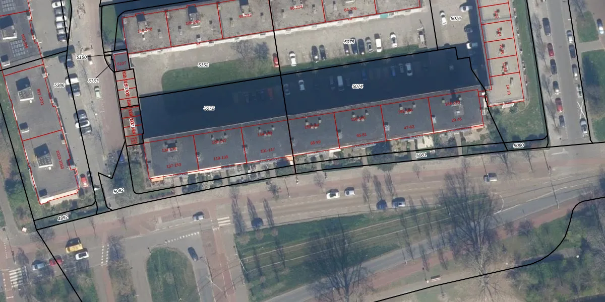 Het perceel waarop het adres ligt is LDN03-H-5074. De afkorting 'LDN03' staat voor kadastrale gemeente Loosduinen. De oppervlakte van het perceel is 2030 m². Dat is groter dan gemiddeld in Loosduinen, waar de gemiddelde perceeloppervlakte op 1424,57 m² ligt. Het kleinste perceel in de kadastrale gemeente is 0 m² groot. De grootste perceeloppervlakte is 4,61 km². Er zijn 43 adressen aanwezig op het perceel. De huidige grenzen van het perceel zijn digitaal in de Basisregistratie Kadaster (BRK) geregistreerd op 15-12-2003.