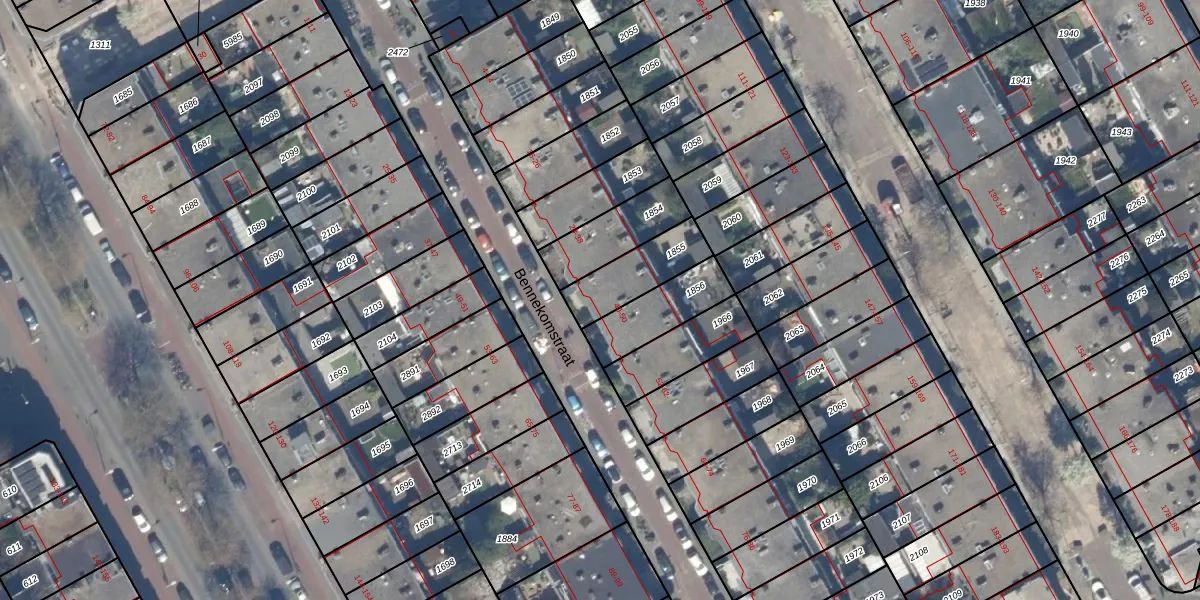 Het perceel waarop Bennekomstraat 40 staat heeft een oppervlakte van 187 m². Dit is een middelgroot perceel. De perceeloppervlakte wordt geregistreerd door het Kadaster. Gedetailleerde informatie over de maten van dit perceel kunt u vinden in het rapport Kadastrale kaart met maatvoering van Bennekomstraat 40.