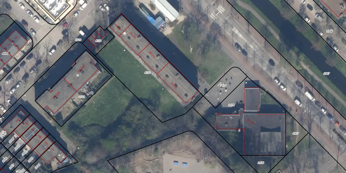 Het perceel waarop Beresteinlaan 227 staat heeft een oppervlakte van 1734 m². Dit is een zeer groot perceel. De perceeloppervlakte wordt geregistreerd door het Kadaster. Gedetailleerde informatie over de maten van dit perceel kunt u vinden in het rapport Kadastrale kaart met maatvoering van Beresteinlaan 227.