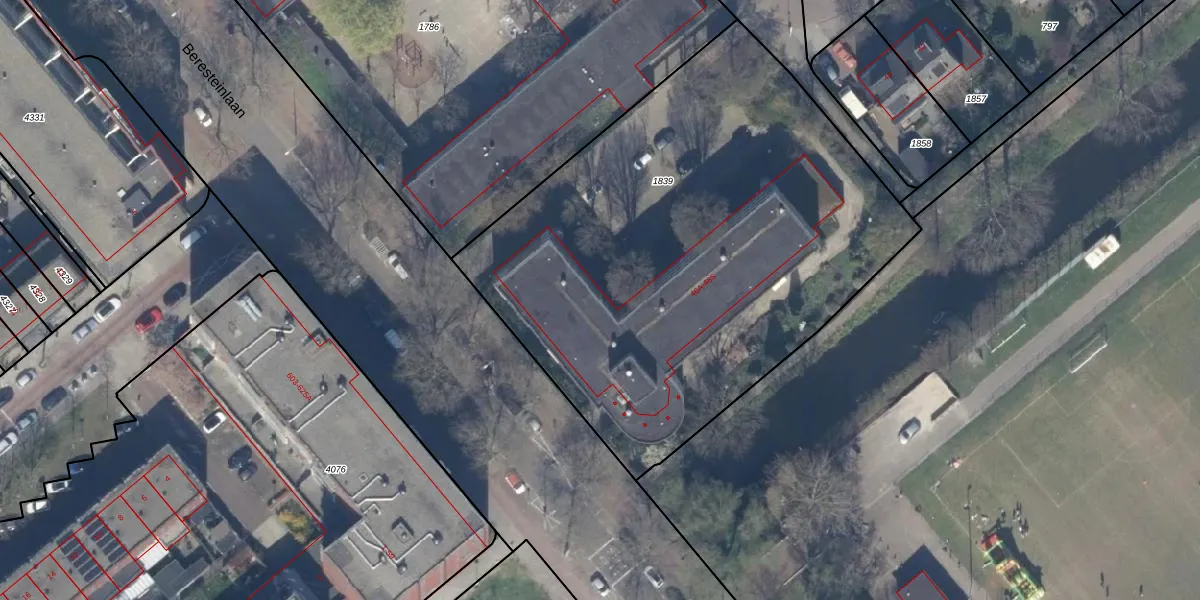 Het perceel waarop Beresteinlaan 46-B staat heeft een oppervlakte van 3037 m². Dit is een zeer groot perceel. De perceeloppervlakte wordt geregistreerd door het Kadaster. Gedetailleerde informatie over de maten van dit perceel kunt u vinden in het rapport Kadastrale kaart met maatvoering van Beresteinlaan 46-B.