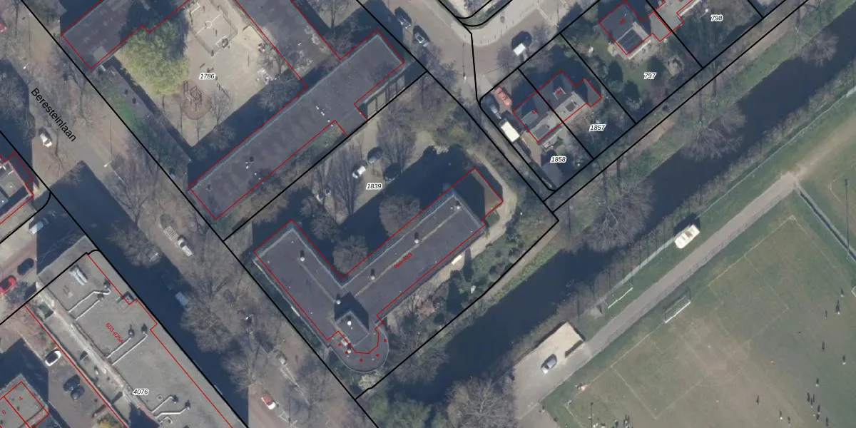 Het perceel waarop Beresteinlaan 46-S staat heeft een oppervlakte van 3037 m². Dit is een zeer groot perceel. De perceeloppervlakte wordt geregistreerd door het Kadaster. Gedetailleerde informatie over de maten van dit perceel kunt u vinden in het rapport Kadastrale kaart met maatvoering van Beresteinlaan 46-S.