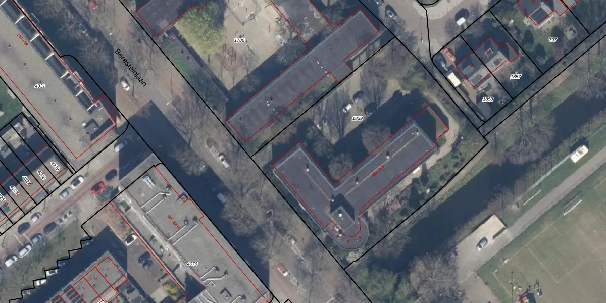 Het perceel waarop Beresteinlaan 48-C staat heeft een oppervlakte van 3037 m². Dit is een zeer groot perceel. De perceeloppervlakte wordt geregistreerd door het Kadaster. Gedetailleerde informatie over de maten van dit perceel kunt u vinden in het rapport Kadastrale kaart met maatvoering van Beresteinlaan 48-C.