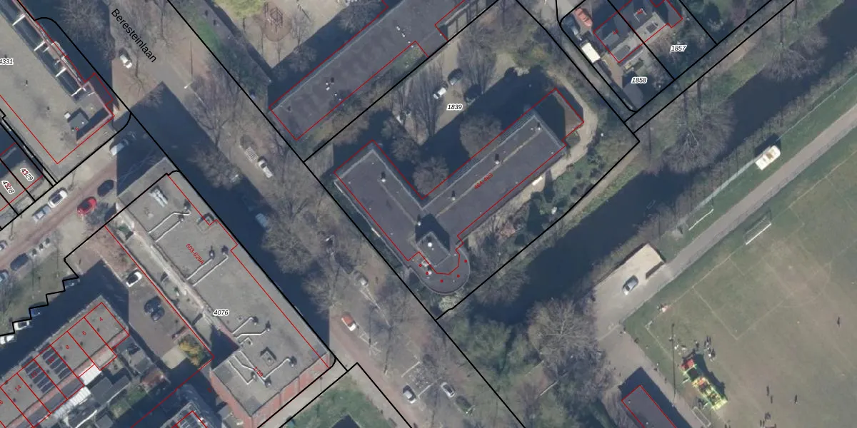 Het perceel waarop Beresteinlaan 48-J staat heeft een oppervlakte van 3037 m². Dit is een zeer groot perceel. De perceeloppervlakte wordt geregistreerd door het Kadaster. Gedetailleerde informatie over de maten van dit perceel kunt u vinden in het rapport Kadastrale kaart met maatvoering van Beresteinlaan 48-J.