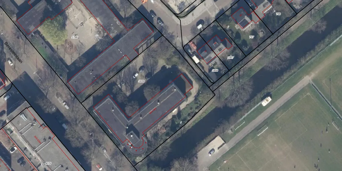 Het perceel waarop Beresteinlaan 48-H staat heeft een oppervlakte van 3037 m². Dit is een zeer groot perceel. De perceeloppervlakte wordt geregistreerd door het Kadaster. Gedetailleerde informatie over de maten van dit perceel kunt u vinden in het rapport Kadastrale kaart met maatvoering van Beresteinlaan 48-H.