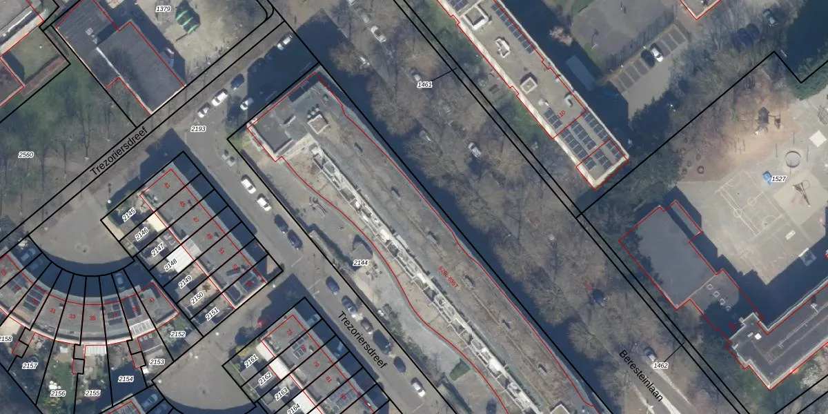 Het perceel waarop Beresteinlaan 631-K staat heeft een oppervlakte van 3395 m². Dit is een zeer groot perceel. De perceeloppervlakte wordt geregistreerd door het Kadaster. Gedetailleerde informatie over de maten van dit perceel kunt u vinden in het rapport Kadastrale kaart met maatvoering van Beresteinlaan 631-K.