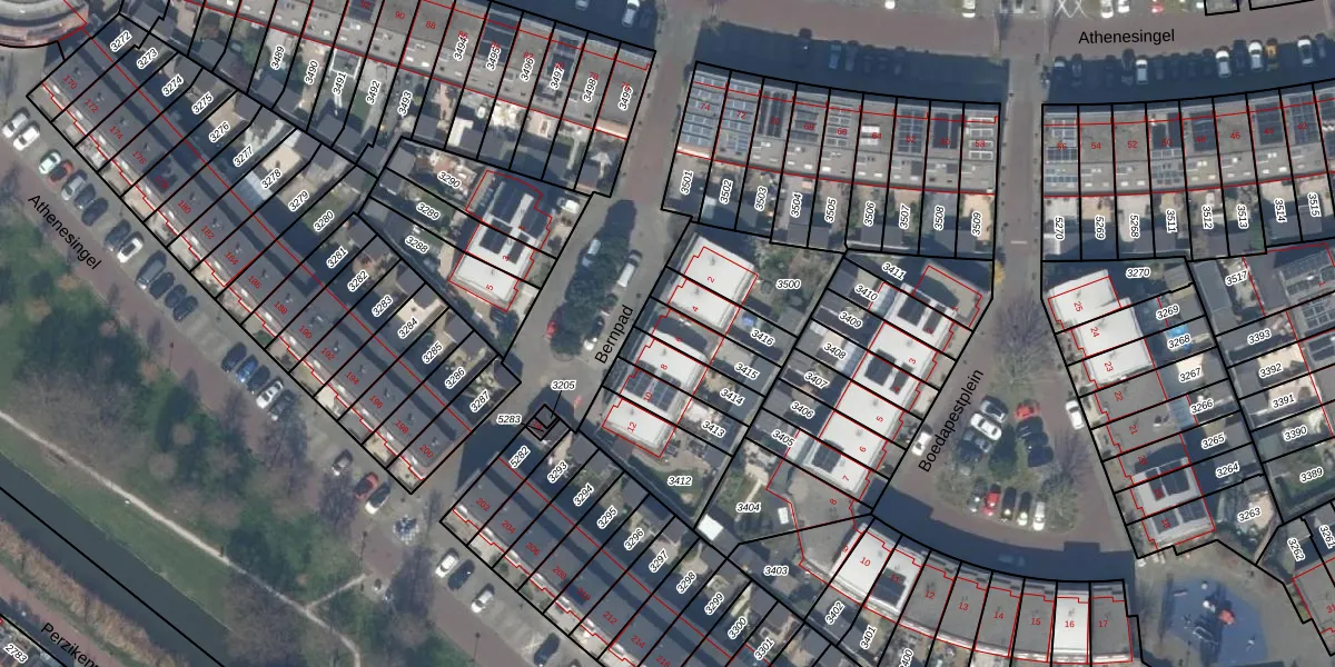 Gebruik de zoekbalk of klik op een perceel voor informatie over de adressen binnen dit perceel.