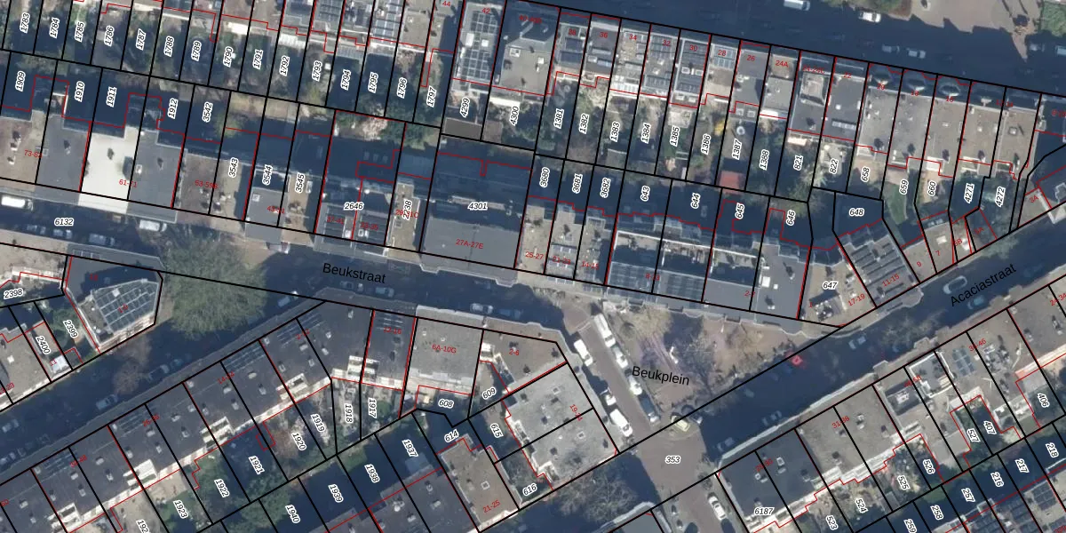 Het perceel waarop Beukstraat 25 staat heeft een oppervlakte van 126 m². Dit is een middelgroot perceel. De perceeloppervlakte wordt geregistreerd door het Kadaster. Gedetailleerde informatie over de maten van dit perceel kunt u vinden in het rapport Kadastrale kaart met maatvoering van Beukstraat 25.