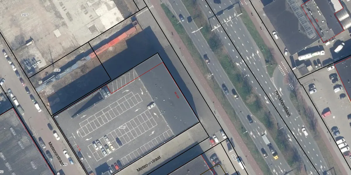 Het perceel waarop Binckhorstlaan 105 staat heeft een oppervlakte van 3237 m². Dit is een zeer groot perceel. De perceeloppervlakte wordt geregistreerd door het Kadaster. Gedetailleerde informatie over de maten van dit perceel kunt u vinden in het rapport Kadastrale kaart met maatvoering van Binckhorstlaan 105.